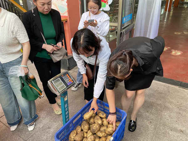 学校安全保障中心带领陪餐家长至食堂入口处,一同把关食品原材料的进货查验,详细检查食材是否新鲜有无腐烂变质现象、食品是否过保或临近保质期、预包装食品是否完整清洁无破损、冷冻食品有无解冻后再次冷冻情形、索证索票是否齐全。
