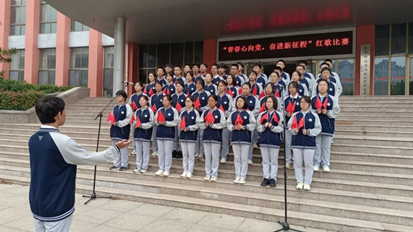 比赛现场,各班用最动听的歌声和最饱满的状态展现了青年学子的卓越风采。《歌唱祖国》《少年中国说》《我和我的祖国》《龙的传人》……同学们用一首首红歌敬祖国、敬理想、敬未来、敬过往,愿巍巍山河永昌,祖国繁荣富强。