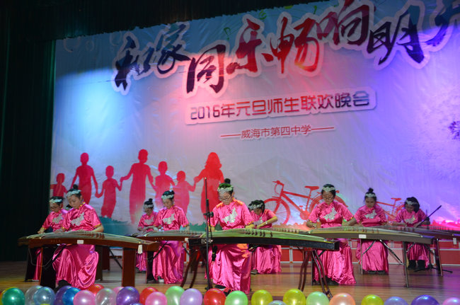 随着灯光亮起,晚会在动感十足、活力四射的开场舞中拉开帷幕。相声《救不救》的幽默搞笑和舞蹈《藤枝叶》的梦幻唯美迎来了阵阵掌声,将现场气氛推向了第一个高潮。由高三老师带来的小品《有笑课间》,延续了2015年元旦汇演中节目的风格,将反串进行到底课,让学生们真正了解平时严肃的老师其风趣可爱的另一面。师生朗诵《元旦在四中》,饱含深情的话语,感动了在场的每一位师生,感谢有你,让四中更美好,感谢四中,让我们拥有每一天的精彩。高三级部老师的舞蹈《小水果》和高一级部老师的年代歌曲联唱让观众们尽情乐在其中,将会场的气氛推向了高潮。学生节目包括小品《甄嬛后传》、二胡演奏《赛马》、古筝合奏《蝴蝶泉边》、吉他独奏《西班牙斗牛曲》,相声《两个弄潮儿》、魔术《幻觉》,幽默的言语、优美的器乐声,让我们看到了学生的多才多艺,让我们进一步坚定了 “多元教育,人人成才”的原则。