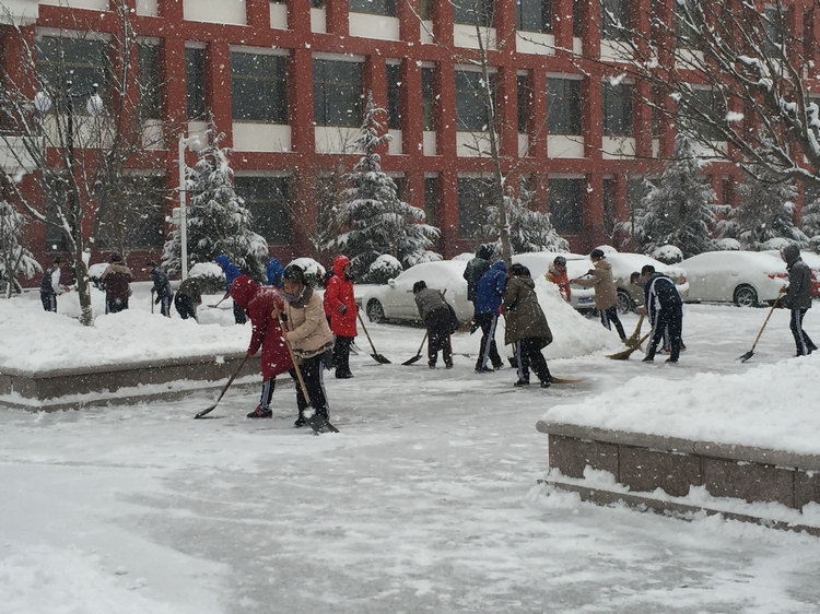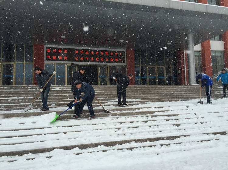 1月18日,kkpay00迎来了漫天大雪,校园内大小道路被厚厚的积雪覆盖,给师生出行带来了安全隐患。学校领导快速反应,积极组织扫雪工作,确保道路安全畅通。高长春校长、邓思源校长、王建光校长带领学校领导在学校主干道清雪,老师们纷纷响应,不顾严寒、路滑,踊跃加入到扫雪队伍中。学生利用课余时间,与老师一起合力清扫校园积雪。大家推的推、铲的铲,忙得不亦乐乎,此时的校园洋溢着暖暖情意。在这次扫雪中,学生发挥了校园主人翁的作用,用行动为学校贡献自己的力量,彼此之间通力合作,增进了集体凝聚力。学校领导更深入的走近了学生,以实际行动为学生树立了好榜样。经过大家的奋力拼搏,清扫完了校内主路上的积雪,消除了滑跌事故的隐患,为师生的活动和出行安全提供了有力的保证。