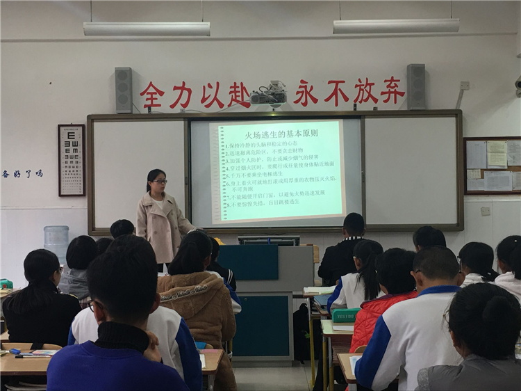 在宣传会上,班主任们从发生火灾时如何报警、扑灭火灾的几种方法及火场逃生要点等几个方法全面详细的介绍了火灾发生时应如何应对。