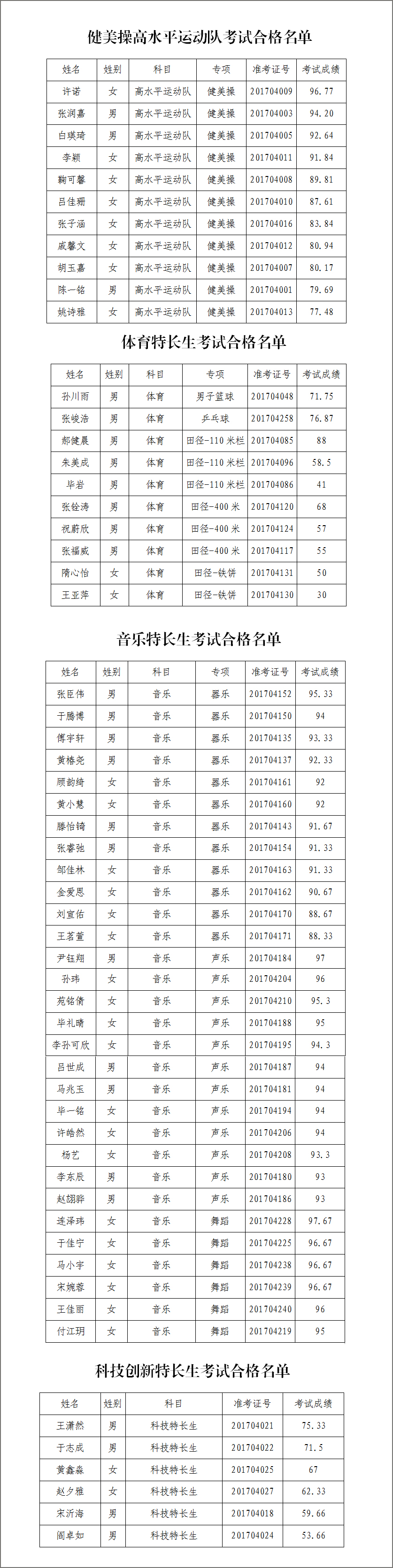 kkpay002017年特长生自主招生考试专业合格人员名单