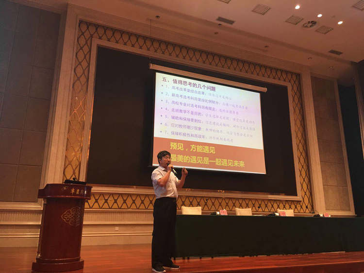 随后赵长江校长做了《新高考时代,如何进行高中生生涯教育及选课指导》的报告。赵校长从生涯规划的必然性和必要性入手,强调了高中应分阶段实施生涯教育。其次赵校长与老师们探讨了如何做好学生选课指导及选课走班工作,希望全体老师们共同做学生生涯规划的引航者,为学生的幸福人生奠基。赵校长在会上高度评价了我校在生涯教育上的探索,并邀请了我校生涯规划教师宁老师进行学科生涯教育经验分享。宁老师强调仅仅靠生涯规划课来培养学生的生涯意识,提升他们的生涯决策能力是远远不够的。需要在学科教学中渗透生涯教育理念,充分挖掘学科核心素养与学生职业发展密切结合,依托学科教材,由学科教师和生涯教师共同开发学科生涯课程资源,让学生在学科学习中激发学科兴趣,树立职业理想,这才是在学校开展生涯教育的终极追求。