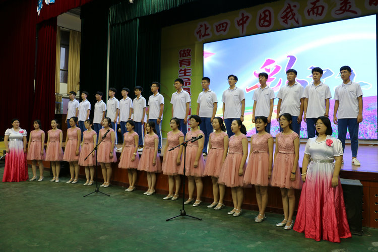 高长春校长应邀走上舞台与同学们互动,他高度赞扬了2018级新生。今天的晚会更是展示了四中学子的多才多艺。他鼓励同学积极参加各项活动来展示优秀的自己。高校长的一曲《众人划桨开大船》将整台晚会推到高潮。“一支竹篙耶,难渡汪洋海;众人划桨哟,开动大帆船;一棵小树耶,弱不禁风雨;百里森林哟,并肩耐岁寒”……. 高校长希望同学们正如这首歌歌词中所唱的这样,能齐心协力,团结互助,拧成一股绳,携手共进,开创更新、更广阔、更美好的未来。