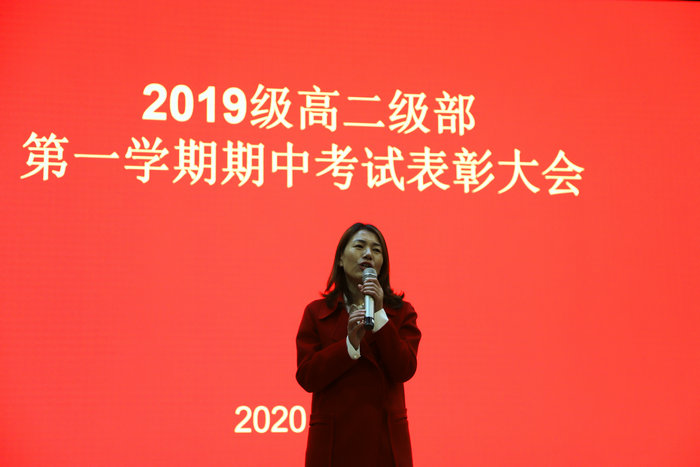 为了表彰先进,端正学风,通过树立典型引导学生见贤思齐,审时度势,成就最好的自己,11月26日下午高二级部召开期中考试学生总结表彰大会,王伦胜副主任主持会议,王玉洁校长为受表彰的同学颁奖并分享幸福感言,桂新光主任做分析总结报告。