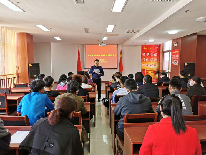 1.召开动员大会。3月30日上午召开考前动员会,高三级部领导、班主任、指导教师、18名考生及家长参加,高三级部于海生主任解读实施方案,并对考生与家长提出要求,教练员代表就外出考试期间要注意的事项作出说明。