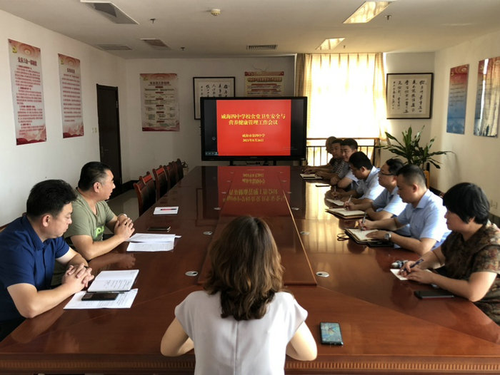 会上,耿少华主任带领参会人员学习了《教育部办公厅 市场监管总局办公厅 国家卫生健康委办公厅加强学校食堂卫生安全与营养健康管理工作的通知》文件,并就当前疫情形势下食堂开学前后人员管控、卫生防疫、开餐准备等方面做了详细的指导,要求食堂负责人、工作人员必须严格按照学校疫情防控预案的总体要求做好开餐条件准备,全体从业人员必须完成两针新冠疫苗接种,认真落实好食品48小时留样制度,加强餐具的清洁消毒。耿主任特别强调,威海乐康餐饮管理有限公司要严格核查并落实餐厅安全、卫生、管理、应急预案等方面的各项制度,检查餐厅环境、炊具、餐具等的消毒卫生情况,做好餐厅服务人员的安全、卫生、防疫、管理等方面的培训情况,切实提高服务水平,在食品药品监管部门全程监督的前提下,做好试餐验收工作。