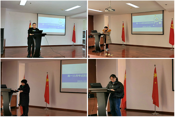 学生的成长与进步离不开全体备课组老师们的共同努力,为精准找出学生现阶段学习中存在的问题和不足,九位备课组长分别上台分享了在本次质量检测中学生的薄弱点,并制定科学的应对策略。除此之外,每位备课组长结合本学科教学进度制定了科学、合理的复习计划,为备战45天后的期末统考做准备。