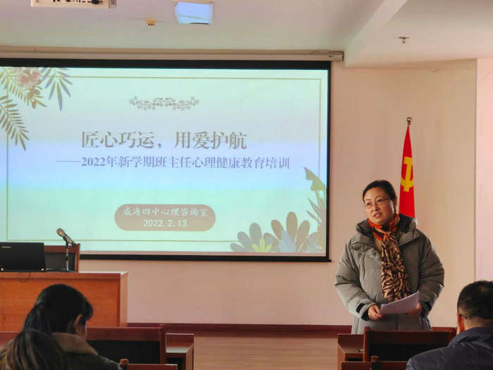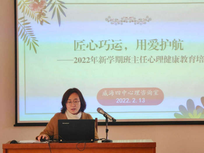 学校专职心理教师宁雯面向全体班主任进行了《匠心巧运、用爱护航》心理健康教育工作培训。宁老师结合新学期要进行的心理健康排查、心理主题班会课开设、个体咨询预约等,对班主任在工作中需要关注的几个方面进行强调。宁老师从心理主题班会课特点、确定适合主题、明确课堂环节、真诚面对学生等方面,探讨如何上好一堂心理主题班会课,并指导班主任如何识别心理问题学生,如何通过课堂、生活等方面对学生心理健康情况进行初步评估,及时做好心理危机干预。