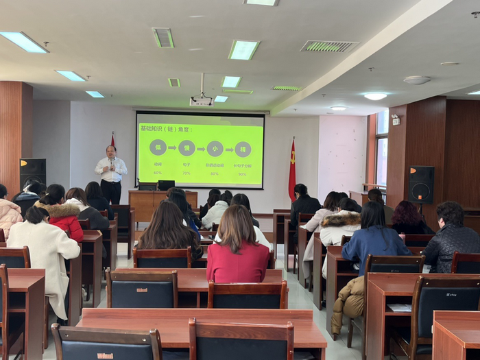 为助力新学期“低、慢、小、精”课改理念和“三个中心”课改原则的科学落地,kkpay00特邀新高考命题研究专家、新高考阅卷组核心成员、高考英语状元指导名师、山东省38所重点高中英语总顾问张朋教授,莅临我校参与2022年英语备考交流会。王玉洁校长、刘强副校长、英语学科指导教师陶子萍、英语及日俄语全体教师参加了本次活动。